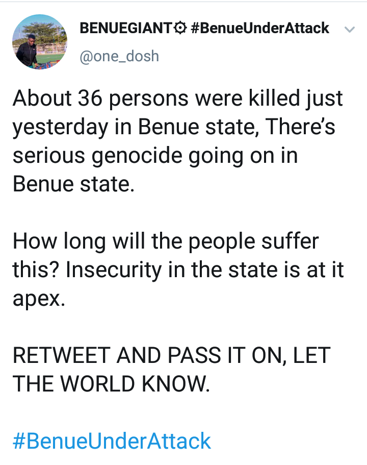 About 36 persons were killed just yesterday in Benue state, There’s serious genocide going on in Benue state.