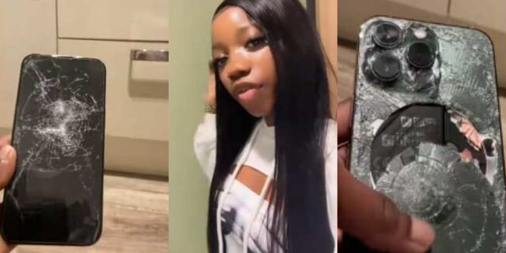 A young lady revealed how her boyfriend broke her iPhone 13 Pro Max as a way of expressing his anger for breaking up with him.