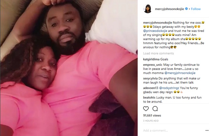Nollywood actress, Mercy Johnson,, who shared a video of her singing to her husband in bed, was trolled on by a fan over the showoff.