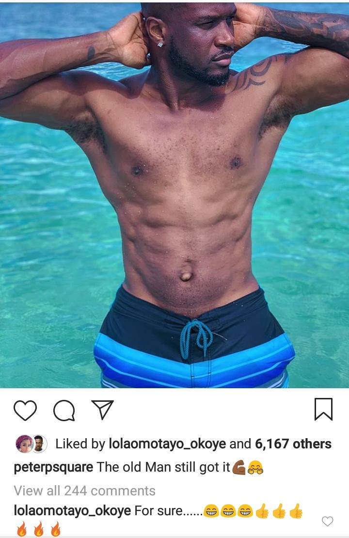 Peter Okoye shared a photo of his ripped abs on Instagram and Lola Omotayo had something to say about it.