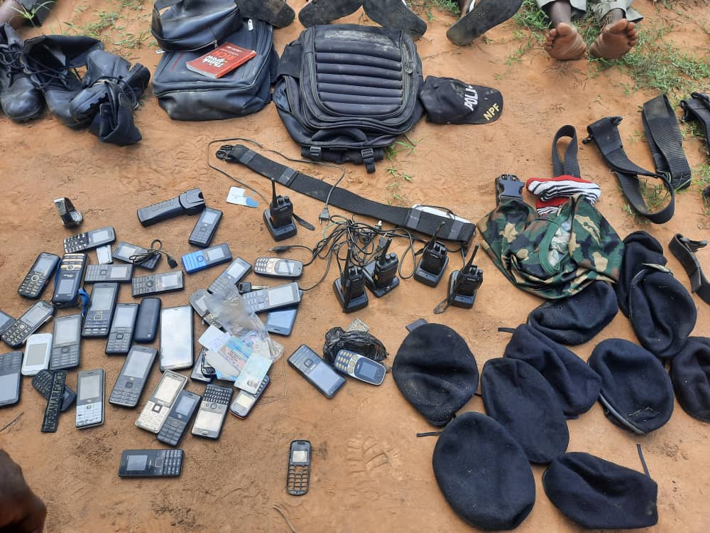 Items recovered include AK 47 rifles, G3 rifles, locally made machine gun, G3 magazine, rounds of ammunition and Baofeng handheld radios with chargers.