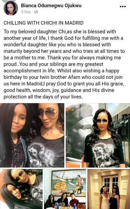 To my beloved daughter Chi,as she is blessed with another year of life, I thank God for fulfilling me with a wonderful daughter like you who is blessed with maturity beyond her years and who tries at all times to be a mother to me. Thank you for always making me proud..You and your siblings are my greatest accomplishment in life. Whilst also wishing a happy birthday to your twin brother Afam who could not join us here in Madrid,I pray God to grant you all His grace, good health, wisdom, joy, guidance and His divine protection all the days of your lives.