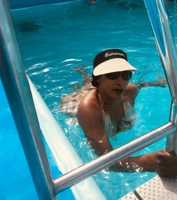 She shared photos of herself taking a deep in the pool. See more photos below.