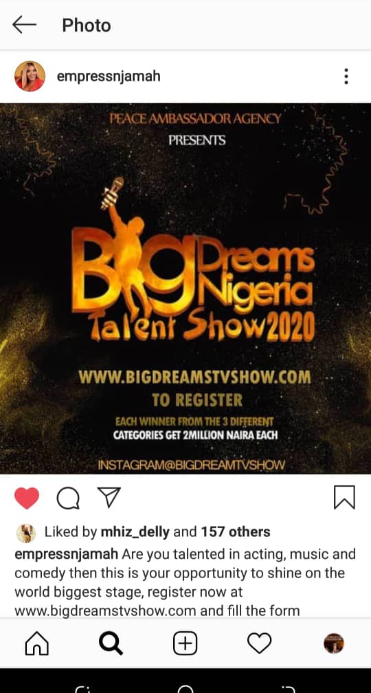 The much-anticipated talent show in Nigeria, “Big Dreams Nigeria”, geared towards discovering and developing young talents who don’t have the means of pursuing their dreams in music, acting, and stand-up comedy across Nigeria and packaged by Peace Ambassador Agency and top showbiz promoters, organizations, and key industry players is set to hit center stage in 2020.