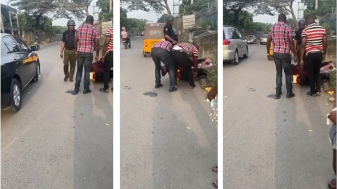 He was stopped at the Yaba area of Lagos state and the policemen wanted to arrest him for operating a motorcycle which has been banned in the state.