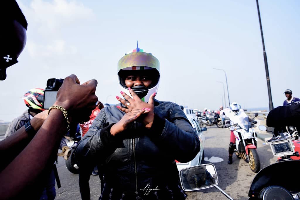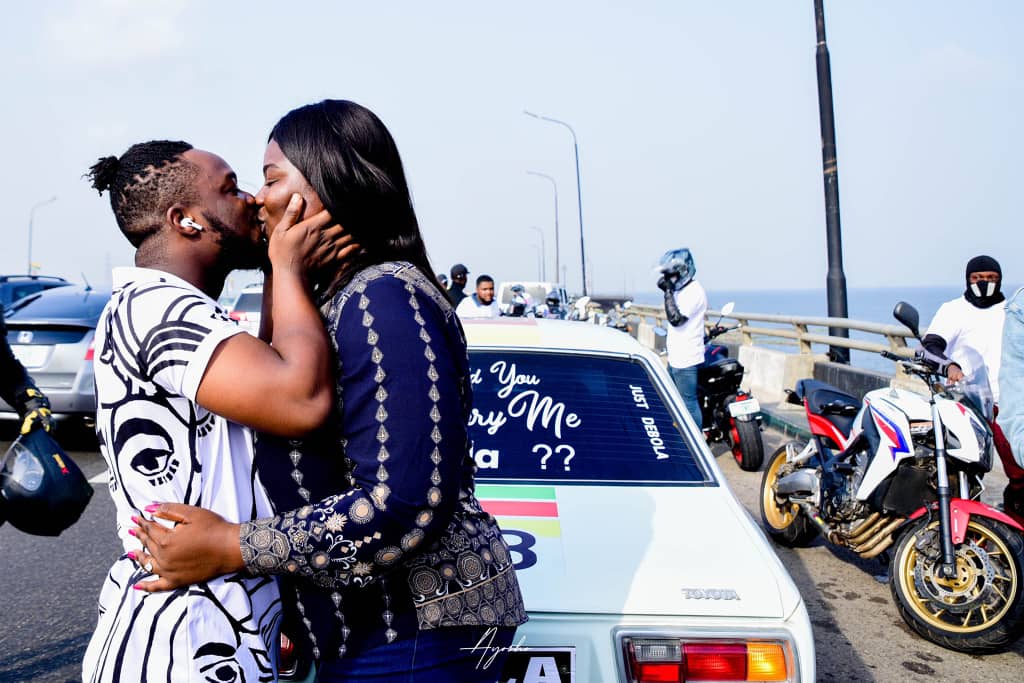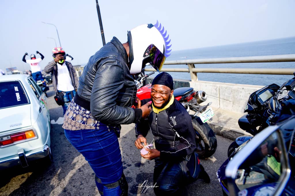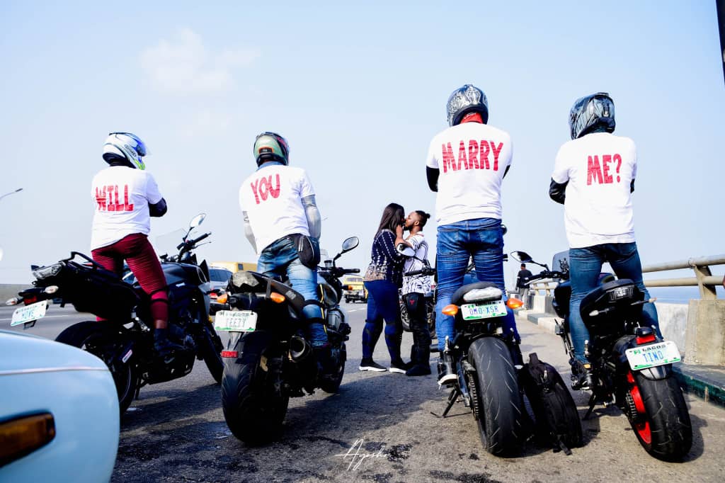 “In the process my baby, Bukolabod said YES!! I pillioned her on my bike and proposed on 3rd mainland bridge. With some of my biker friends.”