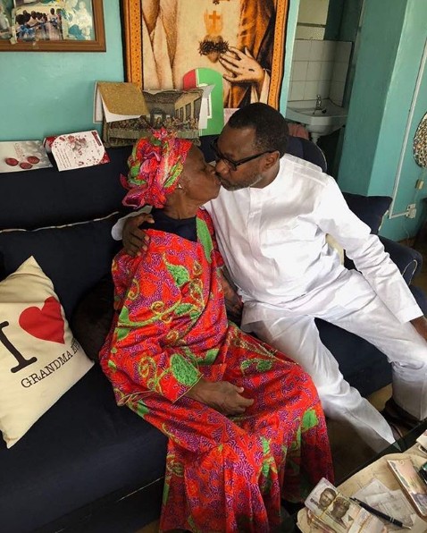 Billionaire oil magnate, Femi Otedola has made his second Instagram post since joining the platform, and it’s a photo of him and his mum kissing.