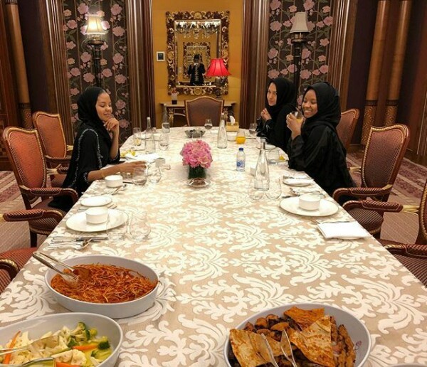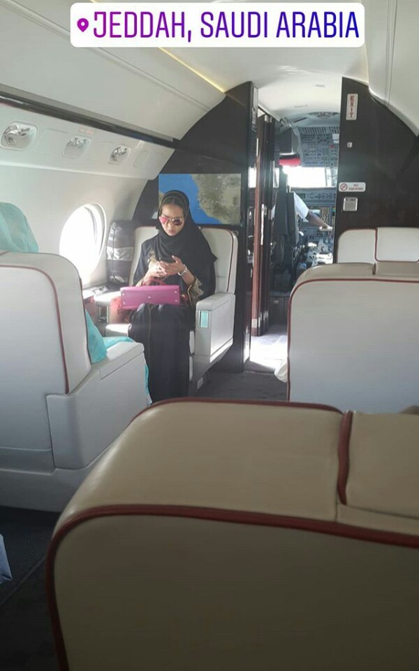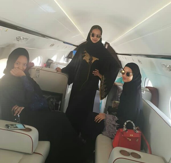 Daughters of Maiduguri billionaire, Mohammed Indimi are pictured in his private as they fly back home after observing Ramadan fast in Saudi Arabia.