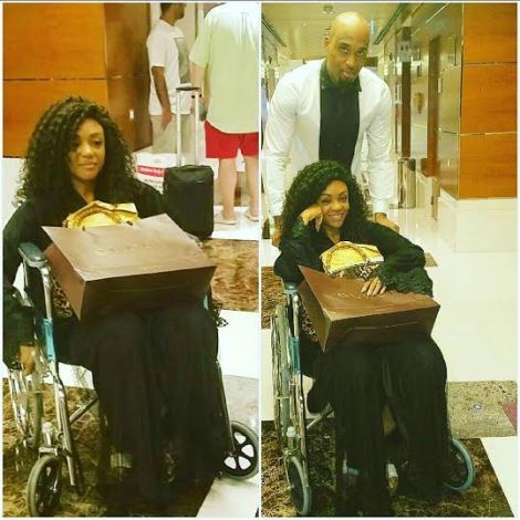 Fifi Umenyiora, wife to Billionaire businessman, Okwudili Umenyiora, dislocated her back recently while on a family vacation. Although she’s currently using a wheelchair to move about while she heals, it didn’t stop her from going shopping in Dubai. She shared the photo above via IG & wrote, “Not all rosy moments. #Dislocatedback#disturbingdubai #Traveldairies #Homeplease’
