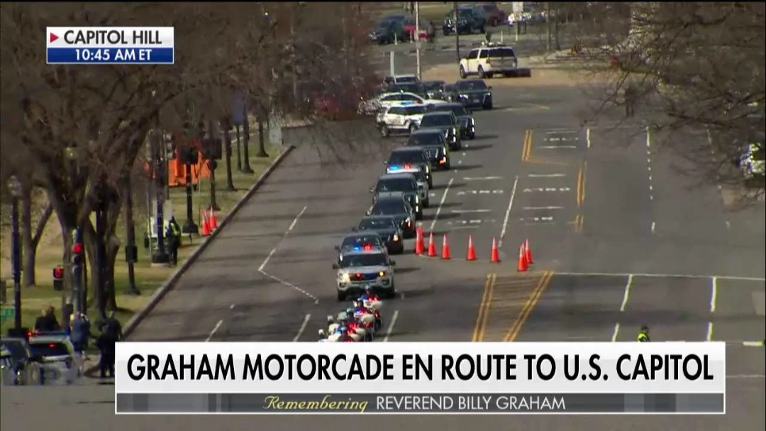 Fox News is told that a flight carrying Graham’s body will land tomorrow morning at Dulles International Airport outside Washington and be escorted via motorcade to the Capitol. Fox News has learned the motorcade will come from the Dulles Toll Road to I-66 and then into D.C. across the Roosevelt Bridge and down