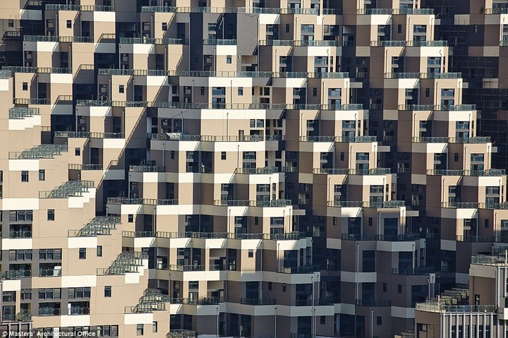 Masters’ Architectural Office, the firm that designed the complex, told MailOnline that its architects were inspired by the traditional Chinese terraced rice fields, which are built into mountain slopes.