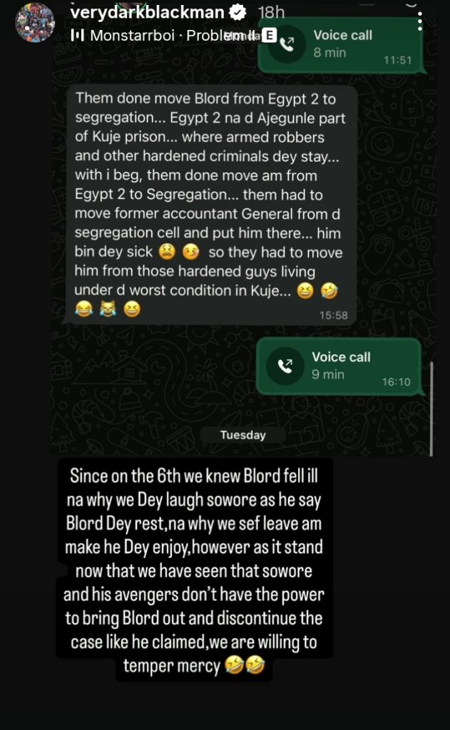 Blord reportedly moved to another section in Kuje prison, details about his health emerge - 9jaflaver