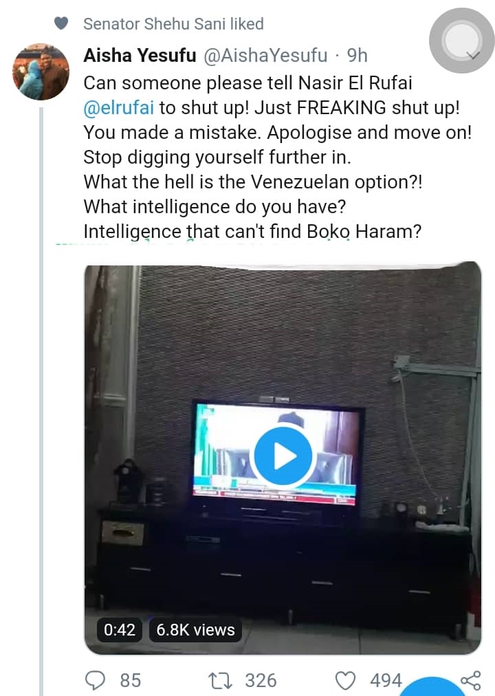 “Can someone please tell Nasir El Rufai @elrufai to shut up! Just FREAKING shut up! You made a mistake. Apologise and move on! Stop digging yourself further in.