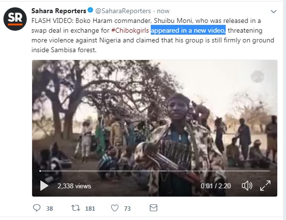 Shuibu Moni, a Boko Haram commander who was freed in exchange for some 82 kidnapped Chibok girls in a deal facilitated by the Swedish government last May has issued fresh threats against the Nigerian state. A video exclusively obtained by Saharareporters shows Moni and some members of his team displaying firepower in Sambisa forest. Moni, who spoke in Hausa and Arabic stated that contrary to claims by the Nigerian government that Boko Haram fighters have been chased out of Sambisa forest in Borno state, they (Boko Haram terrorists) remain firmly on ground.