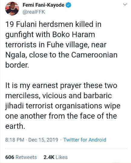 Femi Fani Kayode reacted to the development in a tweet as seen below: