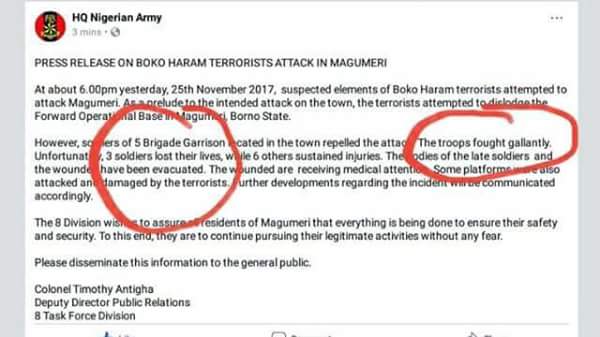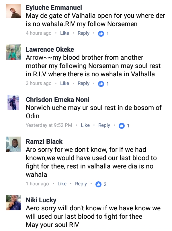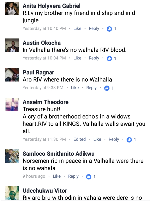 A Nigerian soldier and a member of vikings confraternity fighting Boko Haram in Borno state has been killed by Boko Haram.He was one of the soldiers killed when Boko Haram ambushed soldiers in Magumeri,Borno state. Vikings’ members took to social media to mourn him and asked for a minute silence to the departed Norsemen.They prayed that his