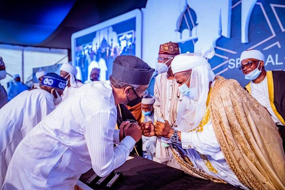 APC National Leader Asiwaju Bola Tinubu , Speaker Femi Gbajabiamila, Gov. Babajide Sanwoolu at the Special Ramadan Tafsir (Prayer and Lecture) for Lagos State today.