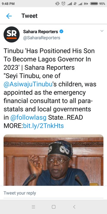 “Seyi Tinubu, one of @AsiwajuTinubu’s children, was appointed as the emergency financial consultant to all parastatals and local governments Lagos.