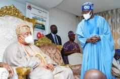 Today Sunday, 13th February 2022, In continuation of Asiwaju Bola Tinubu consultation visit to Ogun State royal fathers, he visited His Royal Majesty, The Akarigbo of Remo Land today at his palace to seek his royal counsel, prayers and blessings.