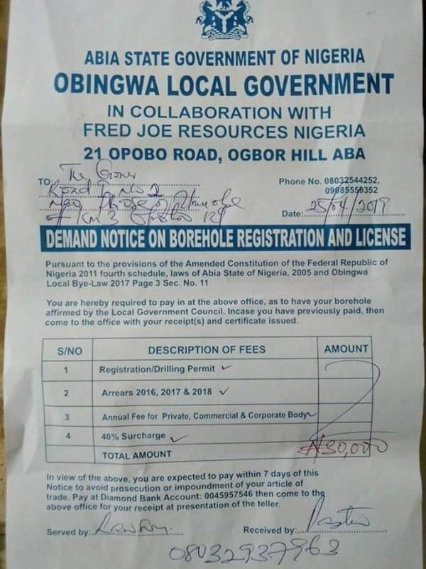 Borehole Owners In Aba To Pay 30k Fee - 9jaflaver