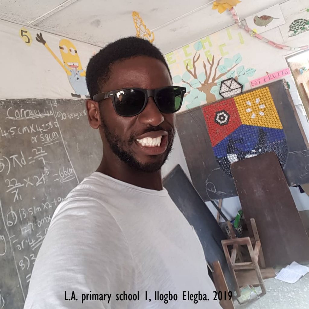 This is Olaniyi Akinsiku, a Lagos state government-employed teacher. He teaches in L.A. primary school, Ilogbo Elegba, a public school.