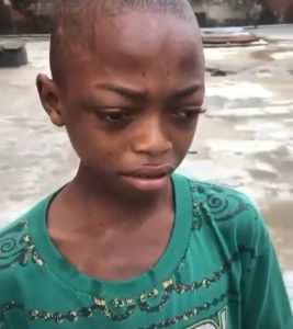 The boy, from Jos, said his mother is dead and his father is in the village, so he was brought from the North to Lagos and handed over to a woman named Onyebuchi in Surulere, Lagos, so that he can work for her and get sent to school in return.