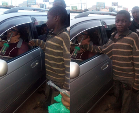According to to twitter user, Matubia, the little boy became emotional after he realized the lady he was begging for money carries oxygen to survive.