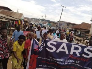 It has been reported that some protesters under the aegis of #EndSARS Movement on Wednesday stormed streets in Osogbo in commemoration of first anniversary of the demonstration against police brutality in the state.