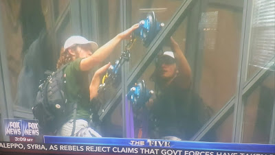 A man has been climbing the Trump Tower with large suction cups for about an hour and half but nobody knows why. He started climbing the tower from the 5th floor, now he is on the 16th floor. The Police have been trying to negotiate with him but he just keeps ignoring them. They have a large air bag on the ground in case he falls. Traffic has been diverted from below where he is. Story developing..