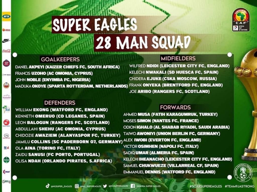 Super Eagles Coach Augustine Eguavoen has named his final squad for AFCON.