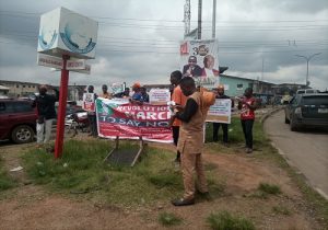 The protesters, led by Oguntola Ayomide, carried banners and placards while chanting anti-government songs.