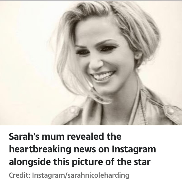 Her mum Marie today confirmed the heartbreaking news on Sarah’s Instagram alongside a touching picture of the star.