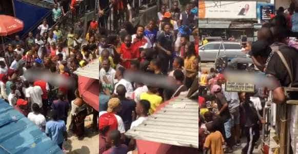 According to reports, the couple were tying the knot in Delta but the groom suddenly dumped the woman at the altar and made his way to Robinson plaza were intercepted a large crowd that begged him to listen to his woman.
