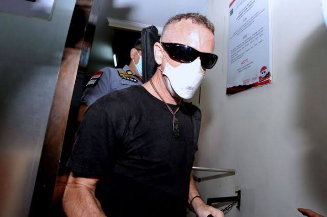 Taylor left Bali’s Kerobokan jail dressed in a black T-shirt and with dark glasses and a mask.