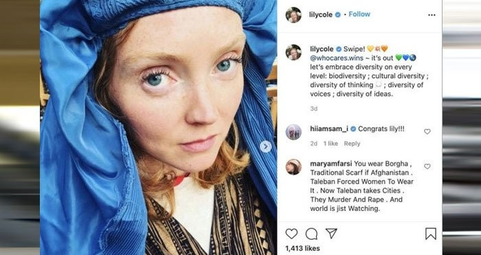 UK model, actress and activist, Lily Cole has come under huge criticism after sharing images of herself wearing the traditional Afghani burqa to promote her book.