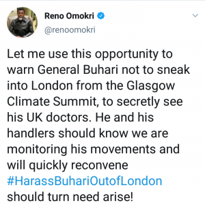 President Muhammadu Buhari has left Glasgow, Scotland for London, England to see his doctors, SaharaReporters has gathered.