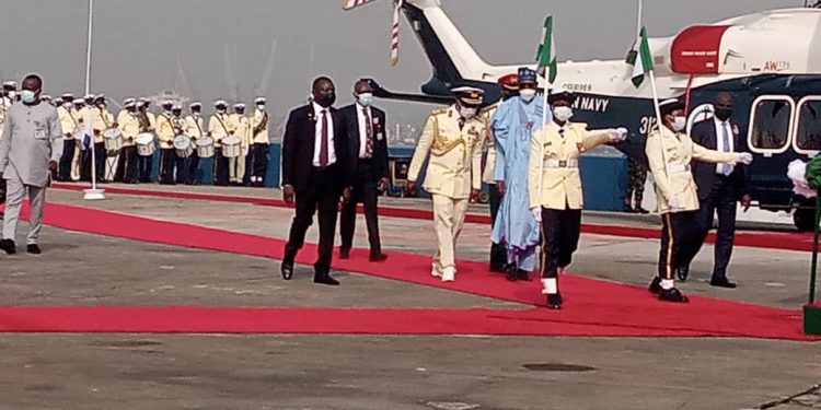 According to Sun News, the President has arrived at the Nigerian Navy Dockyard for the commissioning of a locally built warship, NNS OJI, which he laid the keel in 2017.