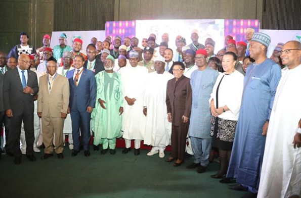 The ceremony which was attended by the chairman of the Independent National Electoral Commission (INEC), Mahmood Yakubu, the secretary-general of the Commonwealth; Patricia Scotland, Catholic Bishop of Sokoto, Mathew Kukah, Abdulsalami Abubakar, the chairman of the National Peace Committee and other members of the National Peace Committee (NPC).