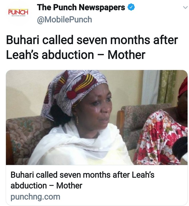 Rebecca, the mother of Leah Sharibu, the Dapchi schoolgirl kidnapped by the Boko Haram insurgents, said the President, Major General Muhammadu Buhari (retd.), called her seven months after the abduction of her daughter. The President, he said, assured her of Leah’s quick release.