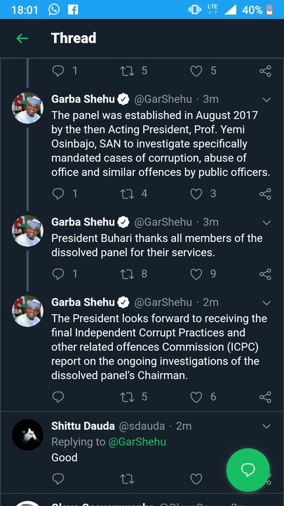 “The President looks forward to receiving the final Independent Corrupt Practices and other related offences Commission (ICPC) report on the ongoing investigations of the dissolved panel’s Chairman,” it stated.