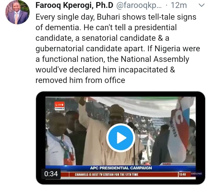single day, Buhari shows tell-tale signs of dementia. He can’t tell a