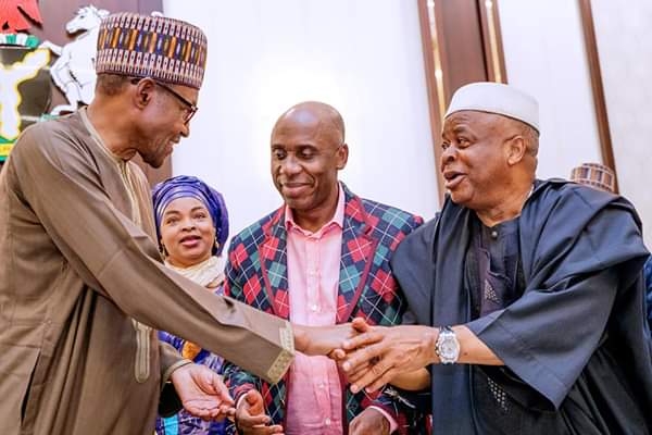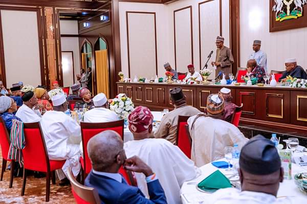 President Buhari yesterday hosted members of APC Presidential Campaign Council(PCC) to a thank you dinner at State House.In attendance were Minister of Interior Abdulrahman Dambazzau, SGF Boss Mustapha, Chief of Staff Abba Kyari, DG Campaign Rotimi Amaechi, Director South PCC Sen. Ken Nnamani,Senator George Akume and others