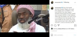 Reacting to Gumi’s comment, Reno in a post shared on his own Instagram page, said the Muslim cleric is always sympathetic to bandits and never to the victims of bandits.