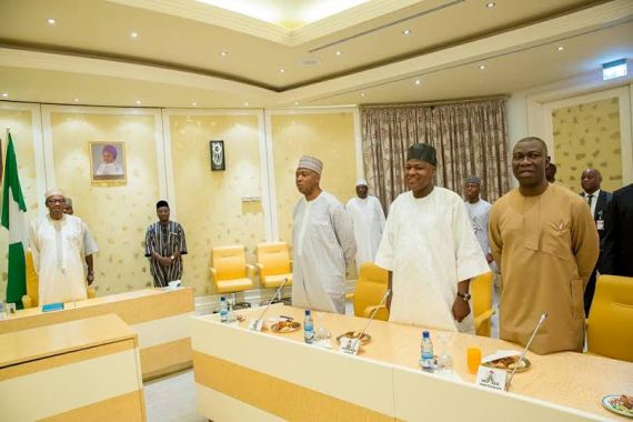 President Buhari and Vice President Yemi Osinbajo had a closed door meeting with leadership of the National Assembly at the state house Abuja today April 26th where they deliberated on the 2016 budget. Continue to see more photos..