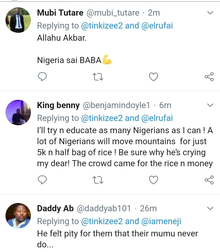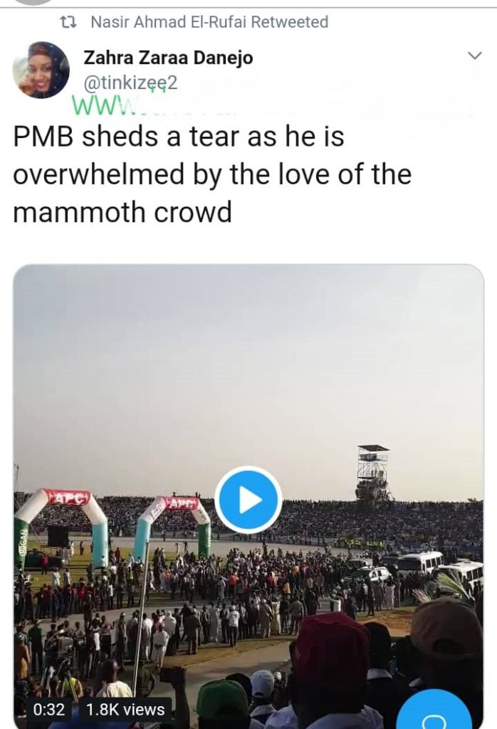 @tinkizee2 shared a very amazing video and reported how President Buhari cried in Kaduna due to the overwhelming love he got from the people of Kaduna.