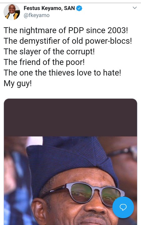 Festus Keyamo, Director, Strategic Communications of President Buhari 2019 Presidential Campaign, has gushed about the Nigerian President Muhammadu Buhari with so many AKA.