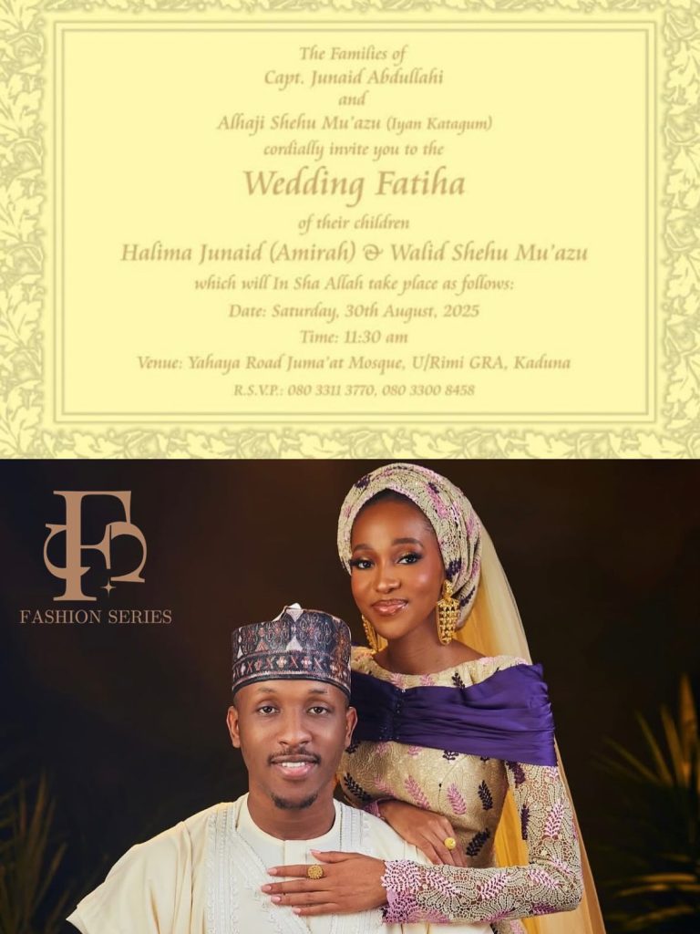 Late former President, Muhammadu Buhari’s granddaughter, Halima Amira Junaid, is set to wed Walid Shehu Mauzu in Kaduna State.