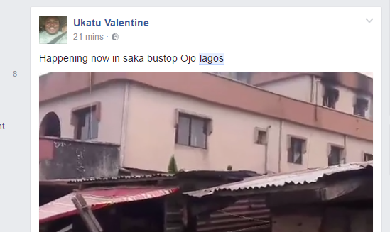 This is currently happening: Building on fire at saka bus stop, Ojo Lagos.