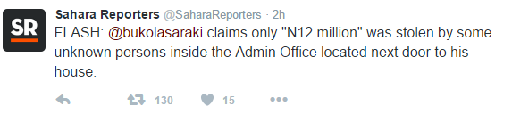 Senate President Bukola saraki and news medium Sahara Reporters are digging each other out on twitter after SR claimed N300million was stolen from Saraki’s bedroom. Nigerians demanded to know how and why N300million will just be sitting in Saraki’s bedroom and Saraki fired back saying the report is false.