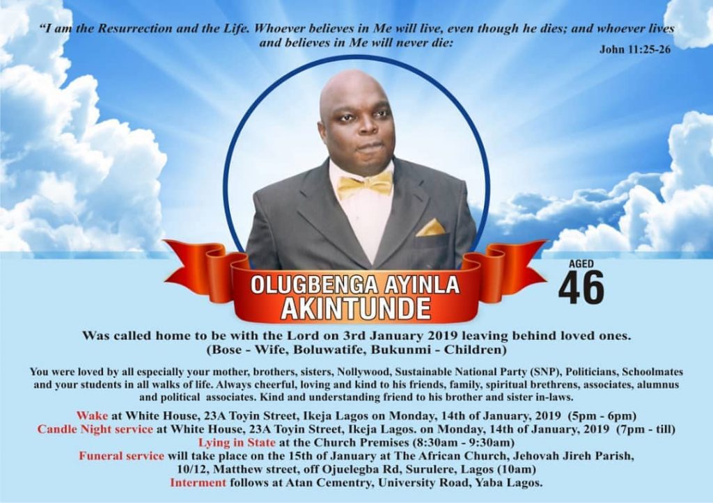 Nollywood actor Ghenga Akintunde who died recently will be laid to rest according to his burial poster on the 15th of Jan.